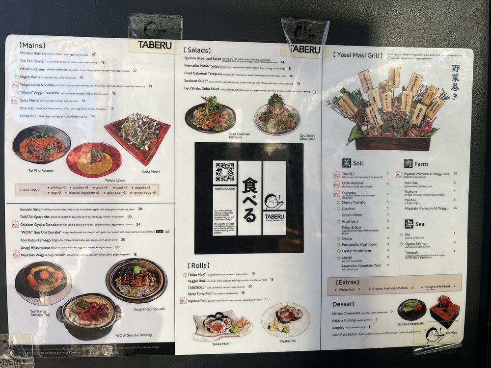 Taberu, located in Los Angeles, offers a blend of Asian flavors with a modern and intimate ambiance. From delicious Taberu Bentos to appetizing starters like Sauteed Oyster Mushrooms and Soft Shell Crab, the menu is filled with savory options for all diners. For the perfect summer treat, try the Wagyu Tataki or indulge in the unique Nori Shio Truffle fries. Customers rave about the attentive service and the diverse selection of dishes, catering to both meat lovers and vegans alike. The reviews highlight the exceptional food quality and the passion of the owner and staff. With options for delivery, takeout, and catering, Taberu is a must-visit for those seeking a trendy dining experience with a flavorful twist.